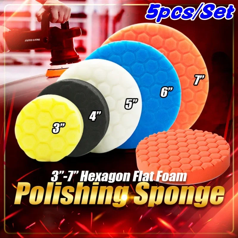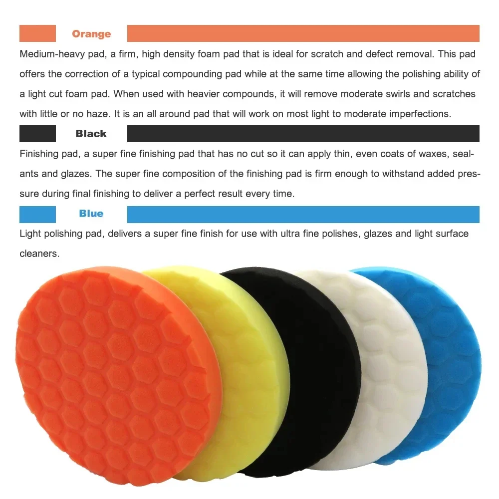 Car Polishing Pad Kit 5/6/7-Inch Self-Adhesive Buffing Wheels,Car Detailing Waxing Sponge Pads, Auto Care Cleaning Tools